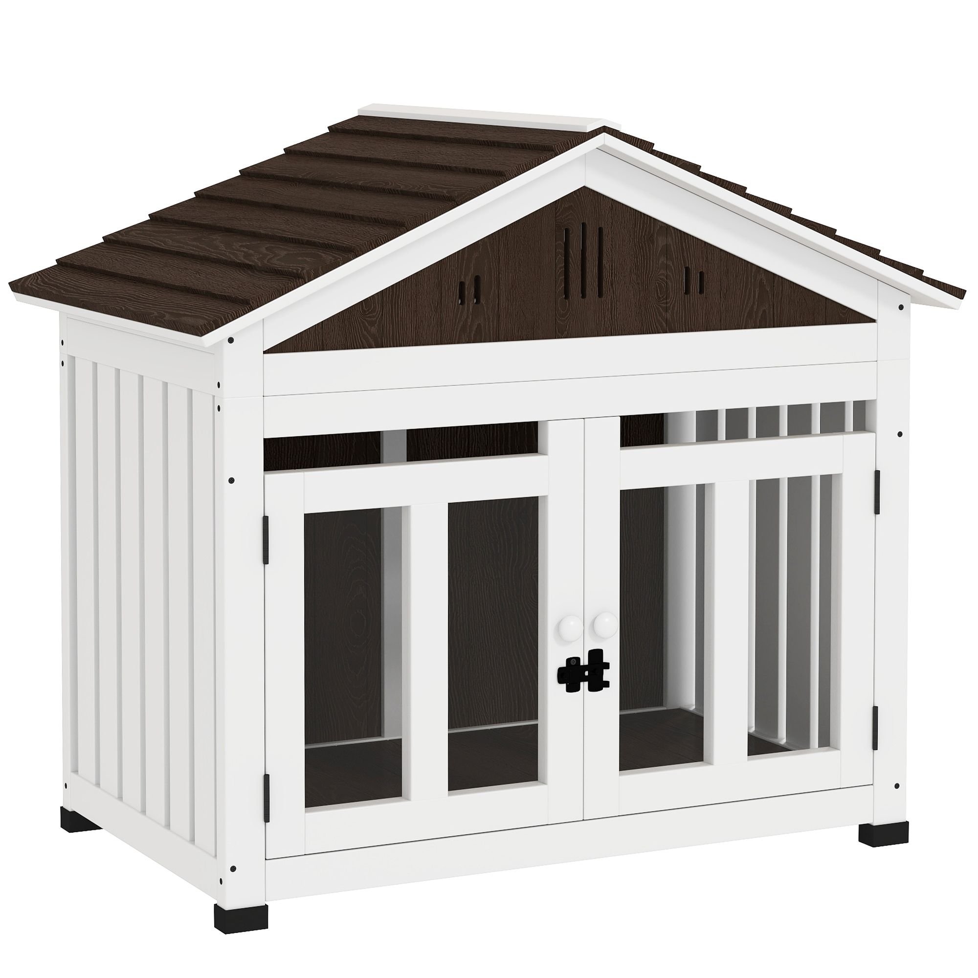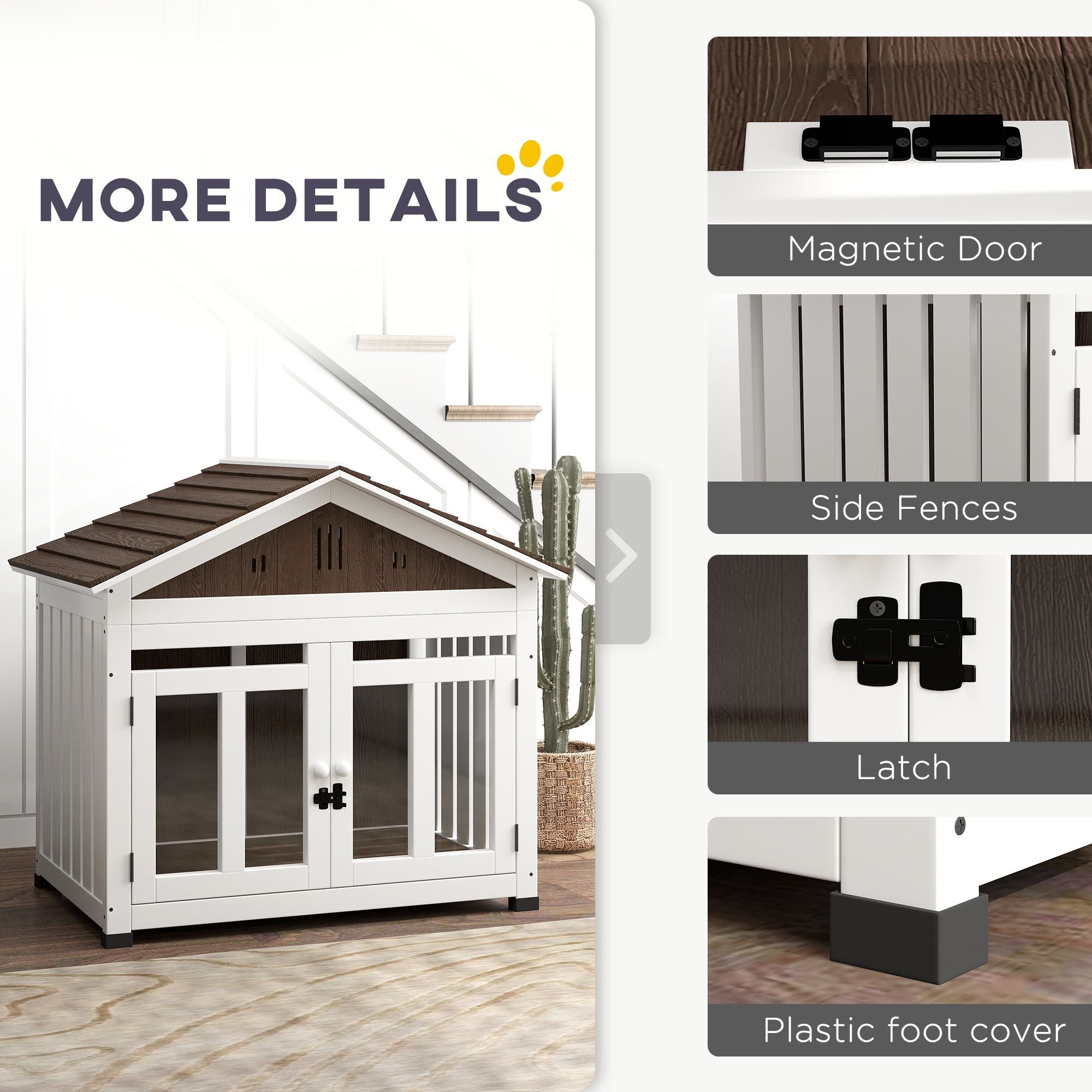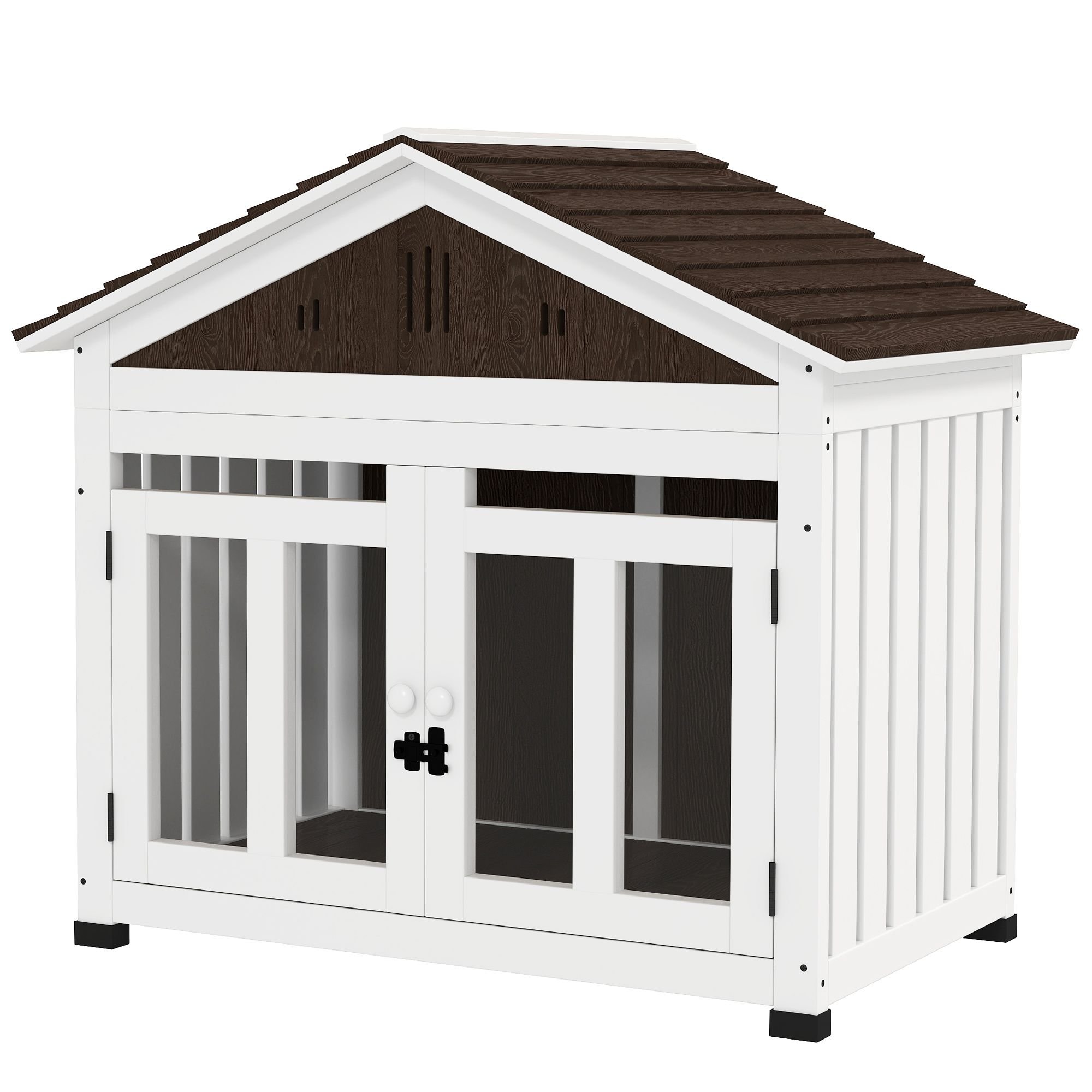 Transform your pet's space with the PawHut Big Dog House! Designed like a cozy house with classic solid wood, this dog kennel furniture blends seamlessly into your home decor. It features a magnetic door with a lock for security and side fences for ventilation, ensuring comfort and style in one. Plus, the removable floor simplifies cleaning, making pet care a breeze!