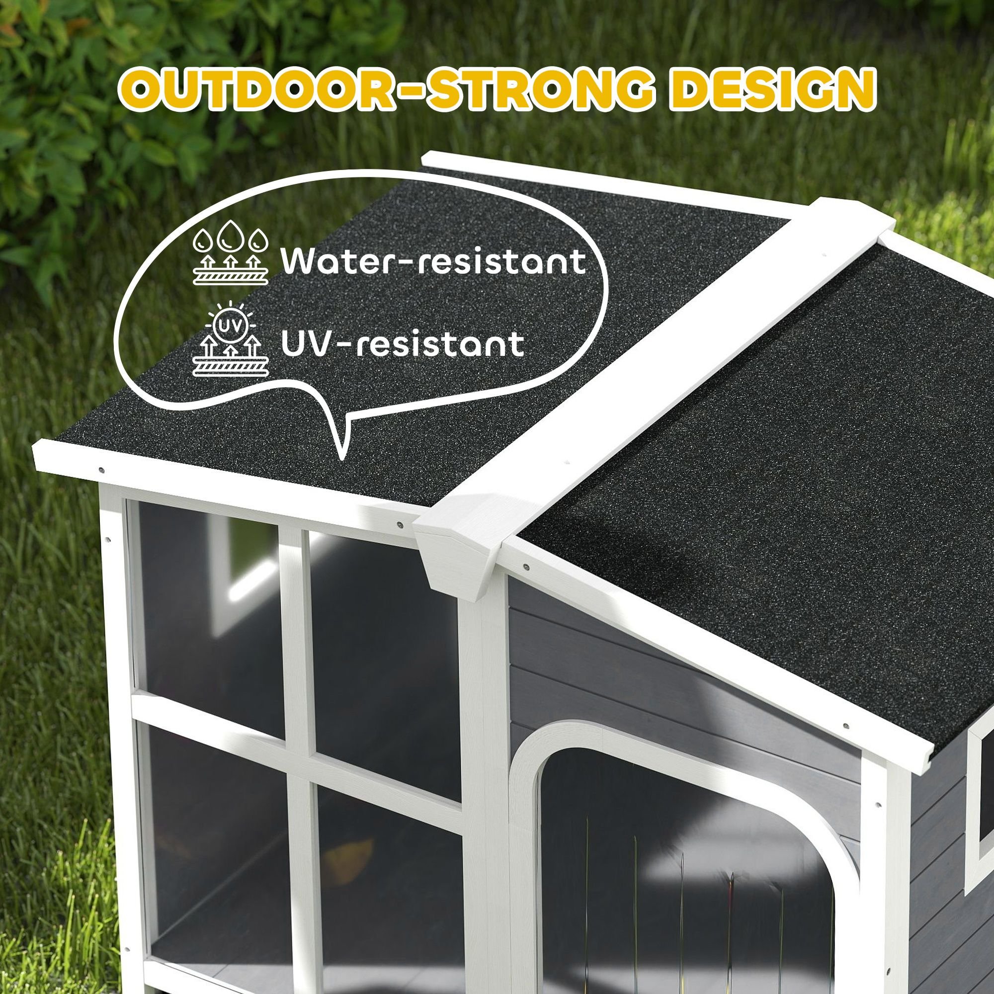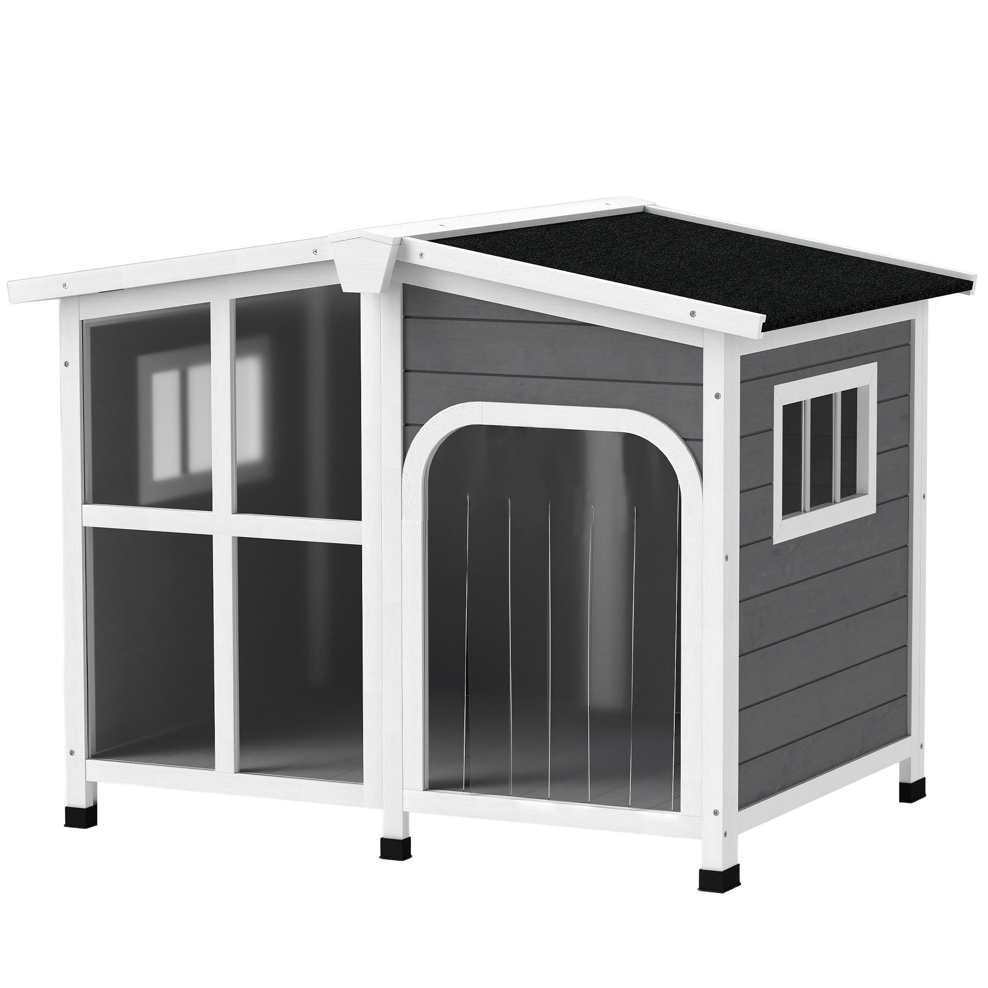 Home > PawHut Cabin-Style Wooden Dog House for Large Dogs with Openable Roof & Giant Window, Dark Gray