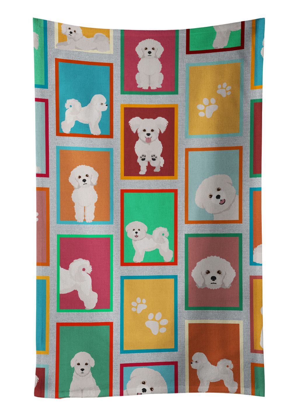 Kitchen Towel featuring breed specific Bichon Frise artwork. Experience the perfect blend of aesthetic appeal and functional excellence with our Plush Velour Kitchen Towels. These are not your ordinary decorative kitchen towels that gather dust. Instead, they are designed to be as practical as they are stylish. The front layer of our towel is constructed from a minky plush polyester, known for its durability and color retention. Unlike conventional kitchen towels, the artwork on our towels is dyed directly into the fabric, ensuring vibrant colors that last. Polish your glassware to a brilliant sparkle using the plush front side of the towel. Flip to the back, crafted from 100% cotton terry loop, to exploit its exceptional absorbency for drying dishes or wiping down counters. Our kitchen towels redefine the concept of functional art, offering lasting quality that maintains the towel's shape over time. Measuring 15 inches by 25 inches and weighing 2.3 lbs per dozen, these towels deliver an overwhelming sensory experience with their soft, plush, and smooth texture. The edges are meticulously finished with binding, enhancing their durability and visual appeal. For your convenience, these towels are machine washable and can be dried on low heat. After the first wash, the top fabric becomes even softer and fluffier, eliminating the need for ironing. Treat your kitchen to the luxury and functionality it deserves with our plush velour kitchen towels.