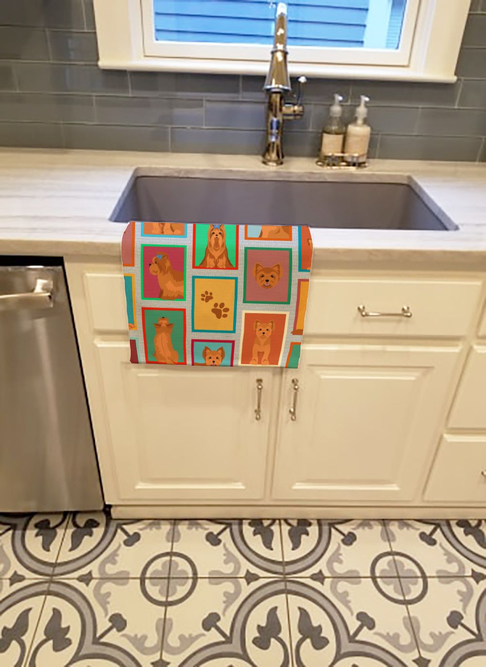 Kitchen Towel featuring breed specific Yorkshire Terrier artwork. Experience the perfect blend of aesthetic appeal and functional excellence with our Plush Velour Kitchen Towels. These are not your ordinary decorative kitchen towels that gather dust. Instead, they are designed to be as practical as they are stylish. The front layer of our towel is constructed from a minky plush polyester, known for its durability and color retention. Unlike conventional kitchen towels, the artwork on our towels is dyed directly into the fabric, ensuring vibrant colors that last. Polish your glassware to a brilliant sparkle using the plush front side of the towel. Flip to the back, crafted from 100% cotton terry loop, to exploit its exceptional absorbency for drying dishes or wiping down counters. Our kitchen towels redefine the concept of functional art, offering lasting quality that maintains the towel's shape over time. Measuring 15 inches by 25 inches and weighing 2.3 lbs per dozen, these towels deliver an overwhelming sensory experience with their soft, plush, and smooth texture. The edges are meticulously finished with binding, enhancing their durability and visual appeal. For your convenience, these towels are machine washable and can be dried on low heat. After the first wash, the top fabric becomes even softer and fluffier, eliminating the need for ironing. Treat your kitchen to the luxury and functionality it deserves with our plush velour kitchen towels.
