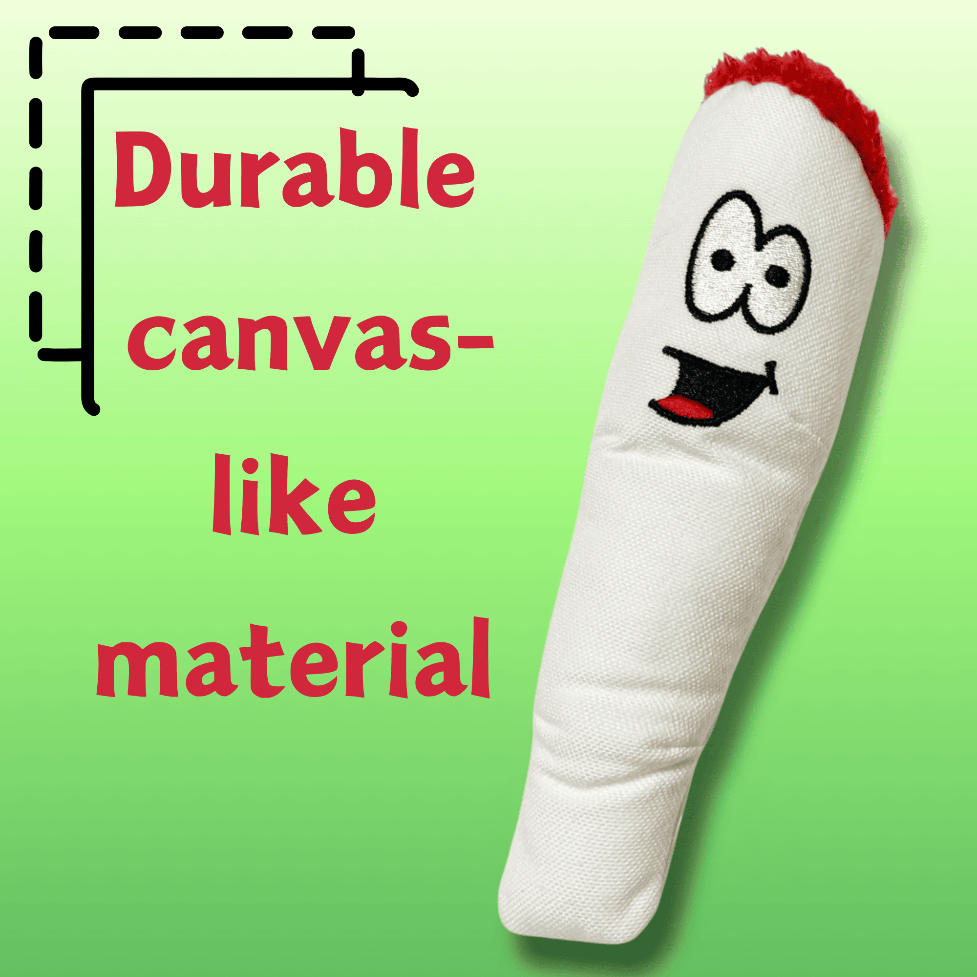 He is made of durable canvas and has a built-in squeaker. He is perfect for a game of fetch. Better yet, use Jay as a funny photo prop in your social media pictures and video. Jay is made to look like a big imitation pot joint. You will love his silly and whimsical expression on the front. Your pup will love joining you for 4:20! It's also a unique gift that any dog owner would appreciate!