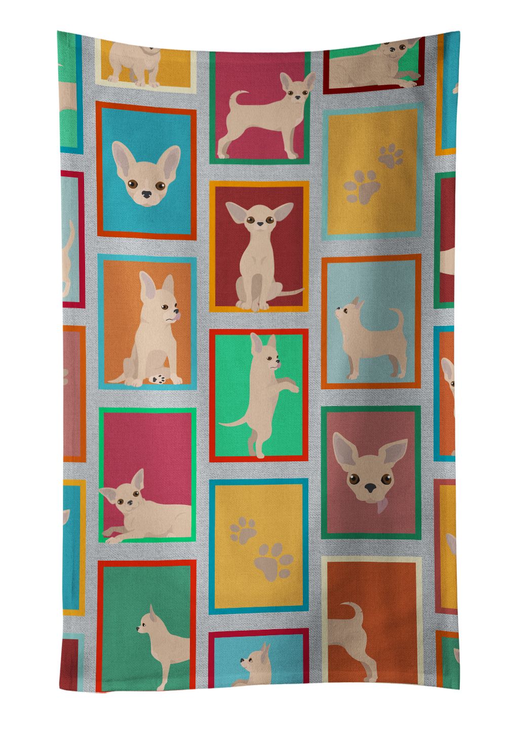 Kitchen Towel featuring breed specific Chihuahua artwork. Experience the perfect blend of aesthetic appeal and functional excellence with our Plush Velour Kitchen Towels. These are not your ordinary decorative kitchen towels that gather dust. Instead, they are designed to be as practical as they are stylish. The front layer of our towel is constructed from a minky plush polyester, known for its durability and color retention. Unlike conventional kitchen towels, the artwork on our towels is dyed directly into the fabric, ensuring vibrant colors that last. Polish your glassware to a brilliant sparkle using the plush front side of the towel. Flip to the back, crafted from 100% cotton terry loop, to exploit its exceptional absorbency for drying dishes or wiping down counters. Our kitchen towels redefine the concept of functional art, offering lasting quality that maintains the towel's shape over time. Measuring 15 inches by 25 inches and weighing 2.3 lbs per dozen, these towels deliver an overwhelming sensory experience with their soft, plush, and smooth texture. The edges are meticulously finished with binding, enhancing their durability and visual appeal. For your convenience, these towels are machine washable and can be dried on low heat. After the first wash, the top fabric becomes even softer and fluffier, eliminating the need for ironing. Treat your kitchen to the luxury and functionality it deserves with our plush velour kitchen towels.