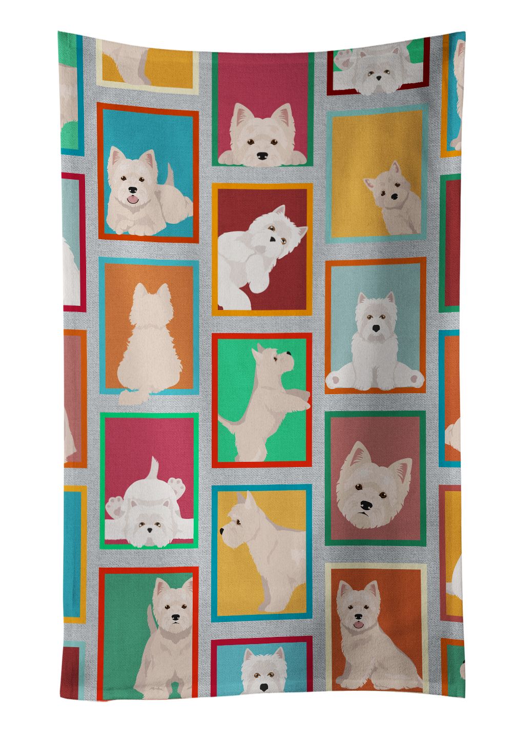 Kitchen Towel featuring breed specific Westie artwork. Experience the perfect blend of aesthetic appeal and functional excellence with our Plush Velour Kitchen Towels. These are not your ordinary decorative kitchen towels that gather dust. Instead, they are designed to be as practical as they are stylish. The front layer of our towel is constructed from a minky plush polyester, known for its durability and color retention. Unlike conventional kitchen towels, the artwork on our towels is dyed directly into the fabric, ensuring vibrant colors that last. Polish your glassware to a brilliant sparkle using the plush front side of the towel. Flip to the back, crafted from 100% cotton terry loop, to exploit its exceptional absorbency for drying dishes or wiping down counters. Our kitchen towels redefine the concept of functional art, offering lasting quality that maintains the towel's shape over time. Measuring 15 inches by 25 inches and weighing 2.3 lbs per dozen, these towels deliver an overwhelming sensory experience with their soft, plush, and smooth texture. The edges are meticulously finished with binding, enhancing their durability and visual appeal. For your convenience, these towels are machine washable and can be dried on low heat. After the first wash, the top fabric becomes even softer and fluffier, eliminating the need for ironing. Treat your kitchen to the luxury and functionality it deserves with our plush velour kitchen towels.