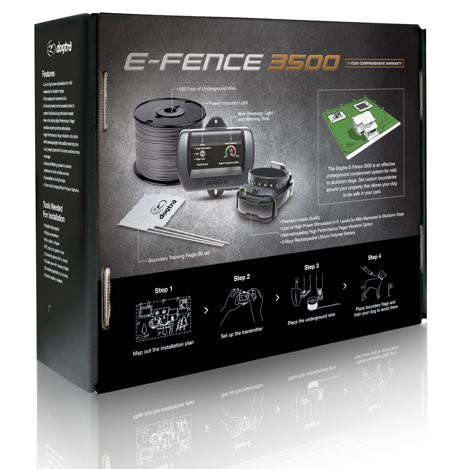 The Dogtra E-Fence 3500 is an effective underground containment system with rechargeable a collar for mild to stubborn dogs. Set custom boundaries around your property that allows your dog to be safe in your yard!