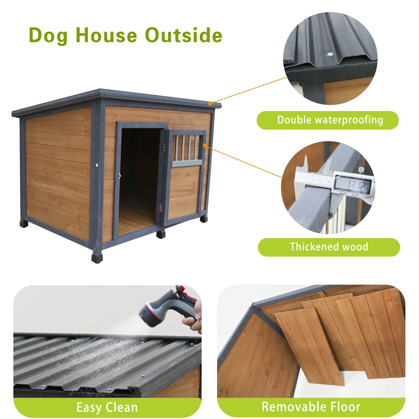 45"large solid wood dog house, waterproof PVC plastic roof, breathable wooden doors