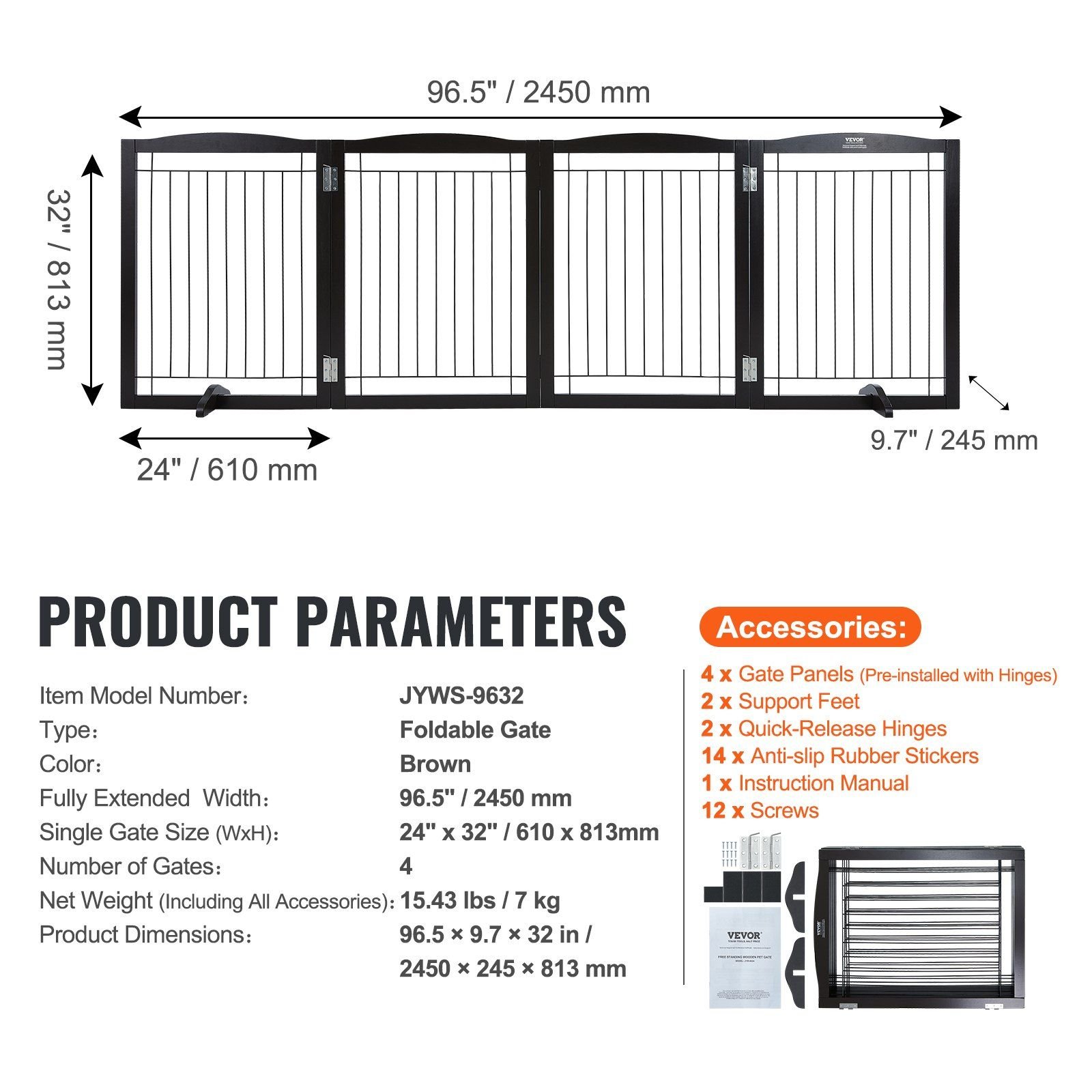 Home > VEVOR Free Standing Dog Gate, 32" H x 96.5" W Freestanding Pet Gate, 4 Panels Foldable Dog Gate for Wide and Narrow Passageways